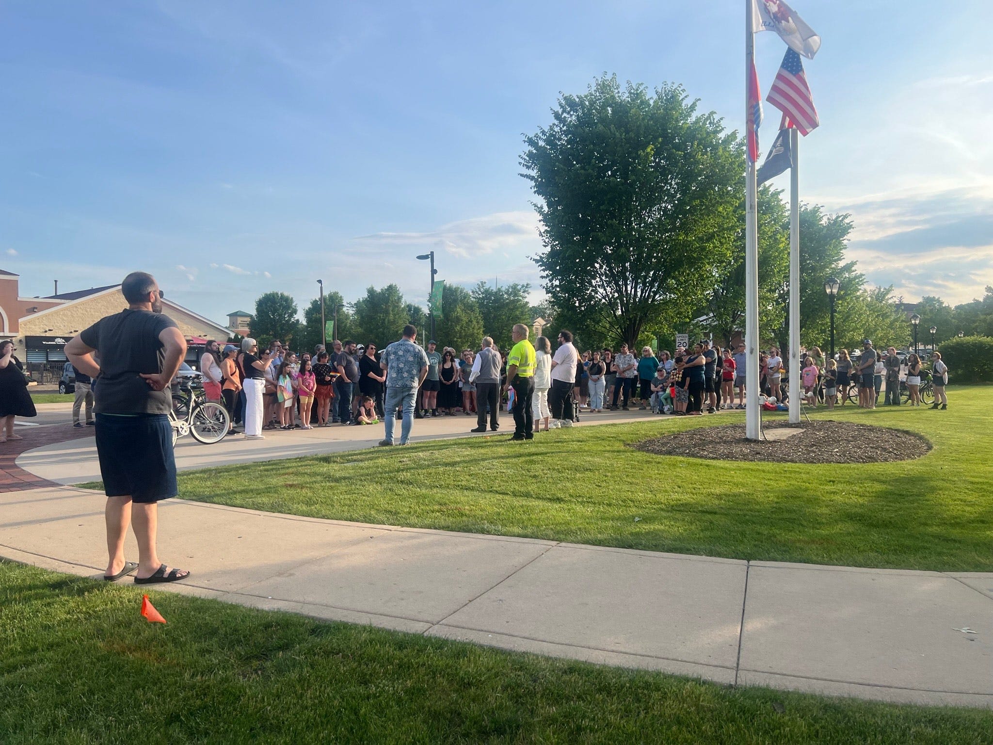That call was received enthusiastically, as a crowd of more than 100 people—the biggest crowd yet—gathered for Batavia’s Pride flag raising, even despite the threat of storms earlier in the day.